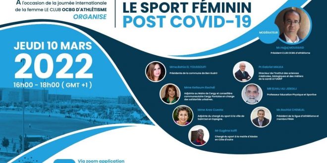 بمناسبة اليوم العالمي للمرأة، ينظم نادي اولمبيك ابن جرير لألعاب القوى ندوة دولية عن بعد تحت عنوان” المراة و الرياضة ما بعد كورونا” بمشاركة ممثلي مدن اسبانية ، فرنسية و من ساحل العاج حيث سيعرضون على المتتبعين تجارب منهم في التعاطي مع الرياضة النسوية بعد سنتين من الانقطاع الشبه التام عن الممارسة .